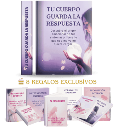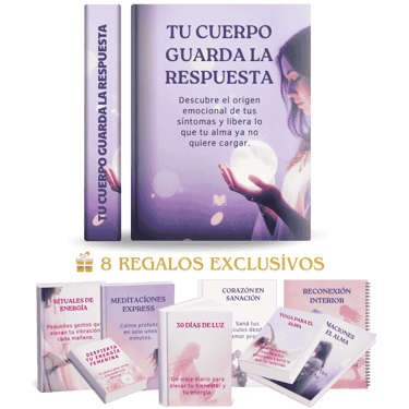 Al adquirir TU CUERPO GUARDA LA RESPUESTA hoy, recibirás totalmente GRATIS una colección de 8 regalos exclusivos, disenãdos para acompañarte en tu proceso de sanación y potenciar tu bienestar físico, emocional, y energético.